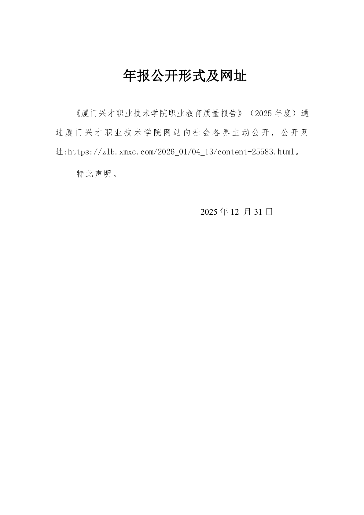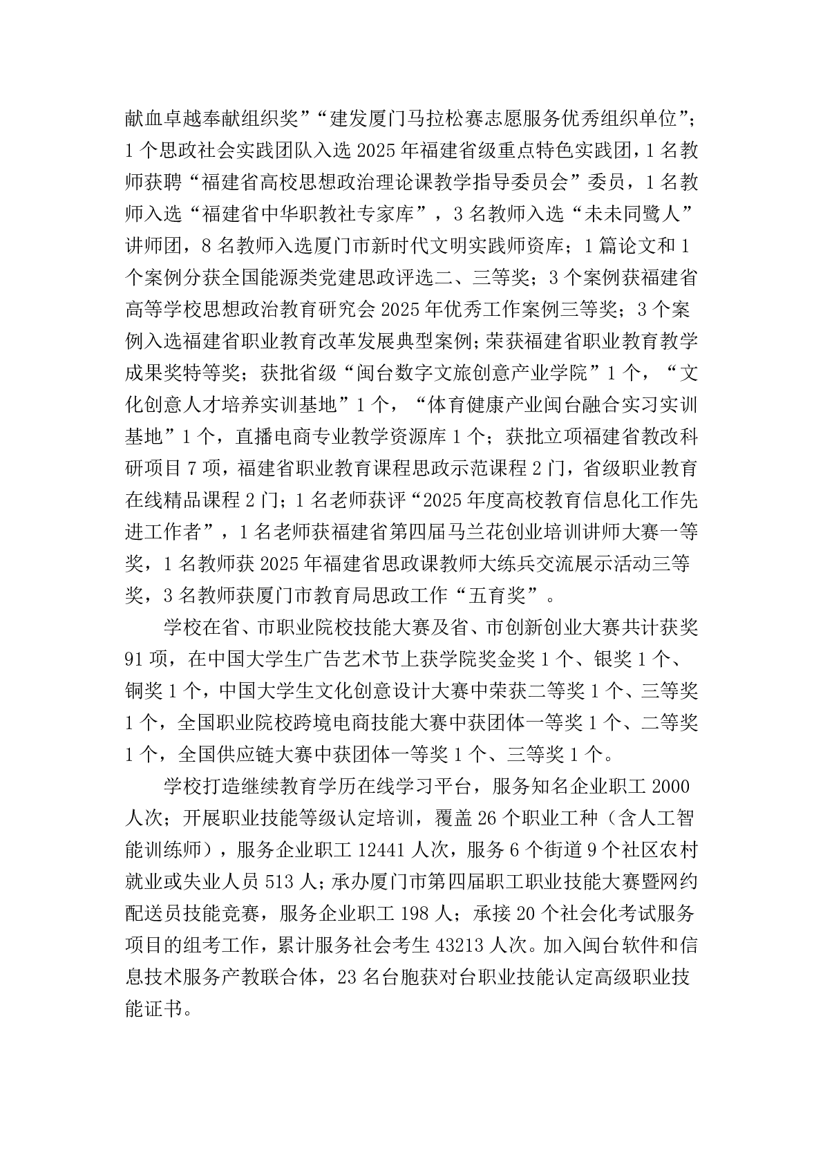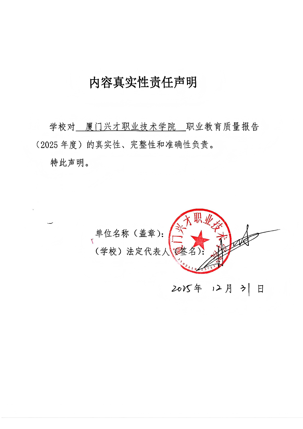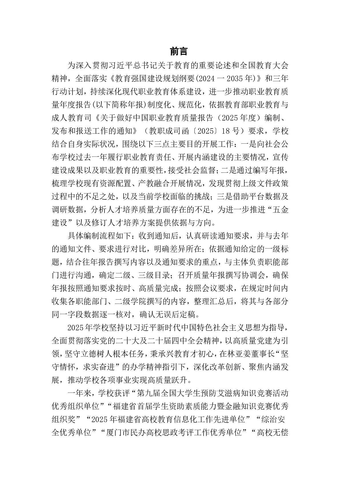 厦门兴才职业技术学院职业教育质量报告(2025年度