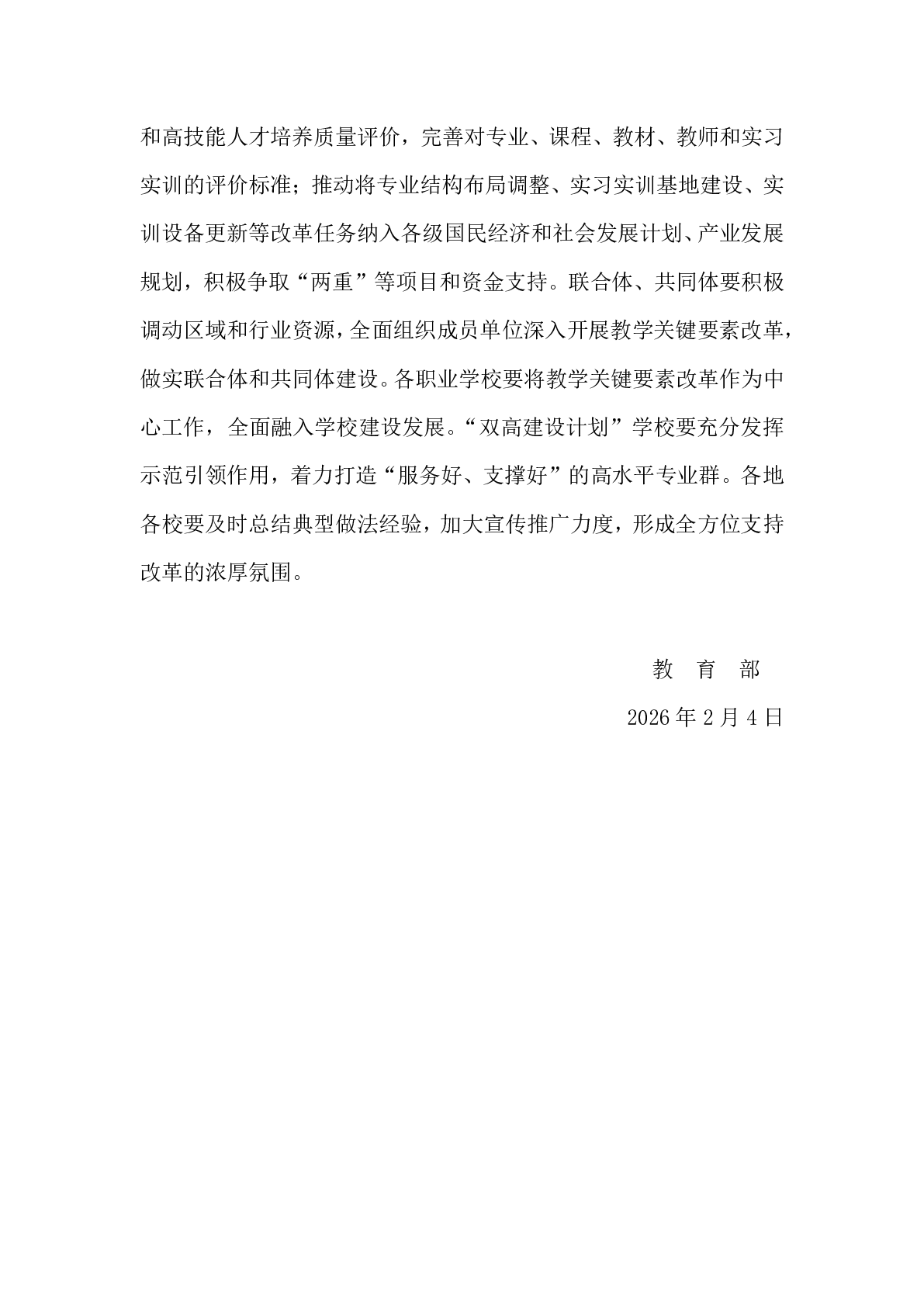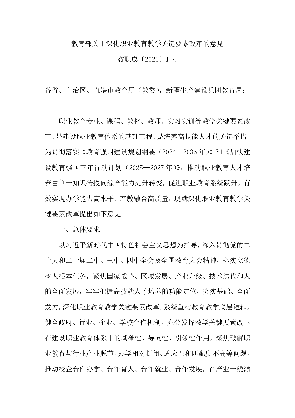 教育部关于深化职业教育教学关键要素改革的意见(教职成〔2026〕1号)