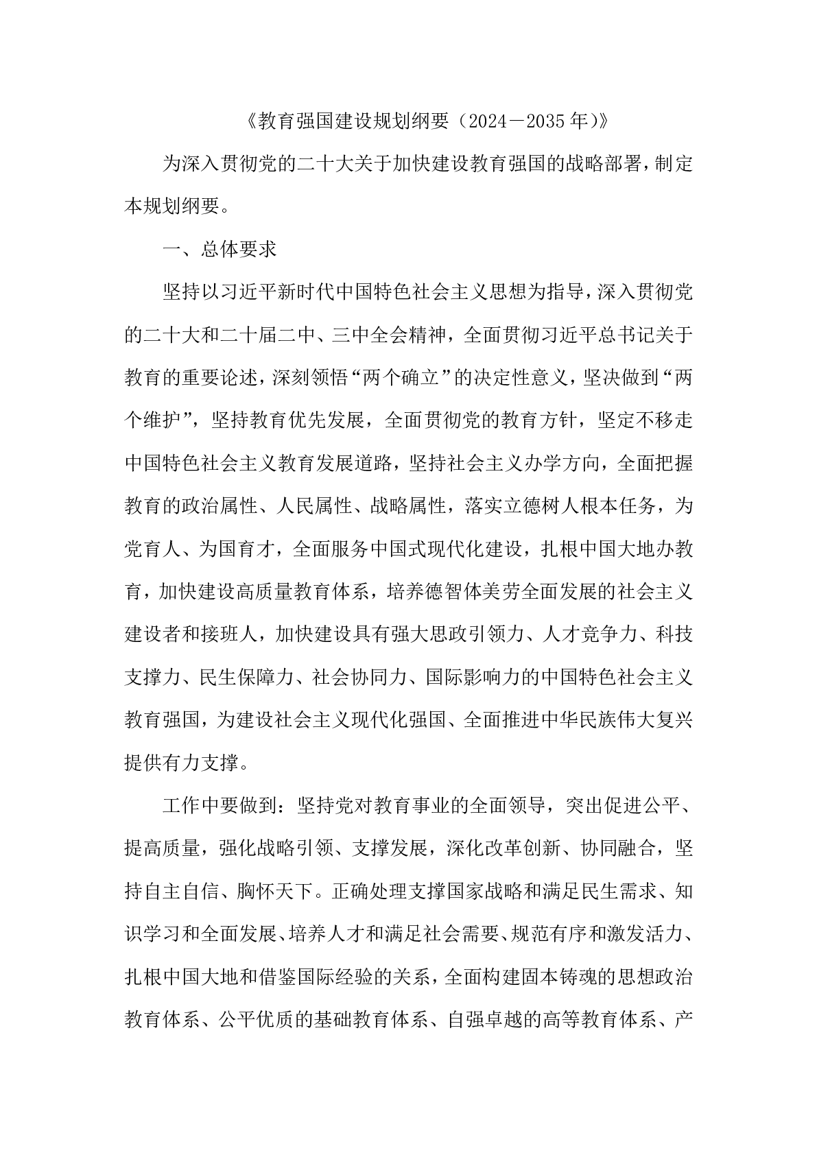 教育强国建设规划纲要(2024-2035年)